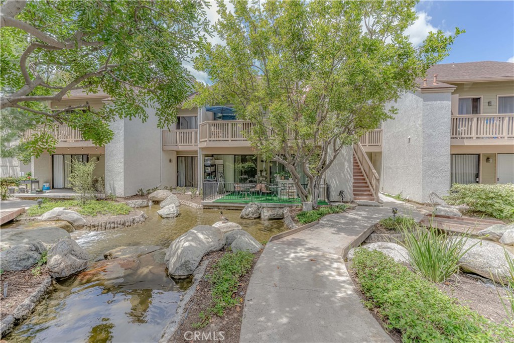 Spacious and renovated 2 bedroom, 2 bathroom condo located in the highly desirable Lakeside Condominium Community of Garden Grove. Upgrades in the home include glass mosaic tile backsplash, modern cabinet hardware, soft close cabinet doors, and upgraded bathrooms. As you enter the home you are greeted to a spacious living room offering warm hardwood floors, high ceilings throughout, and two patio sliders. Open up the newly installed plantation shutters to access the patio sliders and naturally brighten the entire area. Step into the cozy waterfront balcony and enjoy cool breezes while listening to the serene creeks. The washer/dryer is also featured in the balcony closet and included in the sale. Adjoined are the kitchen and eating area providing ample cabinet space, a coffee bar, a pantry closet, and granite counters. Stainless steel appliances include a gas range, oven, dishwasher, refrigerator, and microwave. Nestled in the hall are the two bedrooms and a full bathroom showcasing a newly reglazed tub, resurfaced vanity, and fresh paint. The master suite is very roomy with a private en suite and walk-in closet. Ceramic tile walls, a shower niche, a new tub, resurfaced vanity, and fresh paint is also boasted in the en suite. Other great features of the home include central A/C, carpet flooring in bedrooms, and 2 covered carport parking spaces with one overhead storage closet. The Lakeside Condo community is a very well maintained, gated community with 2 swimming pools, 2 spas, and 2 saunas. Tucked away in lush greenbelts, it is also surrounded by trees, lakes, streams, fountains, waterfalls, and sidewalks with doggy waste bins. Located near downtown Garden Grove’s Steelcraft, Garden Grove Central Library, and Main Street’s shops, eateries bars and shops.