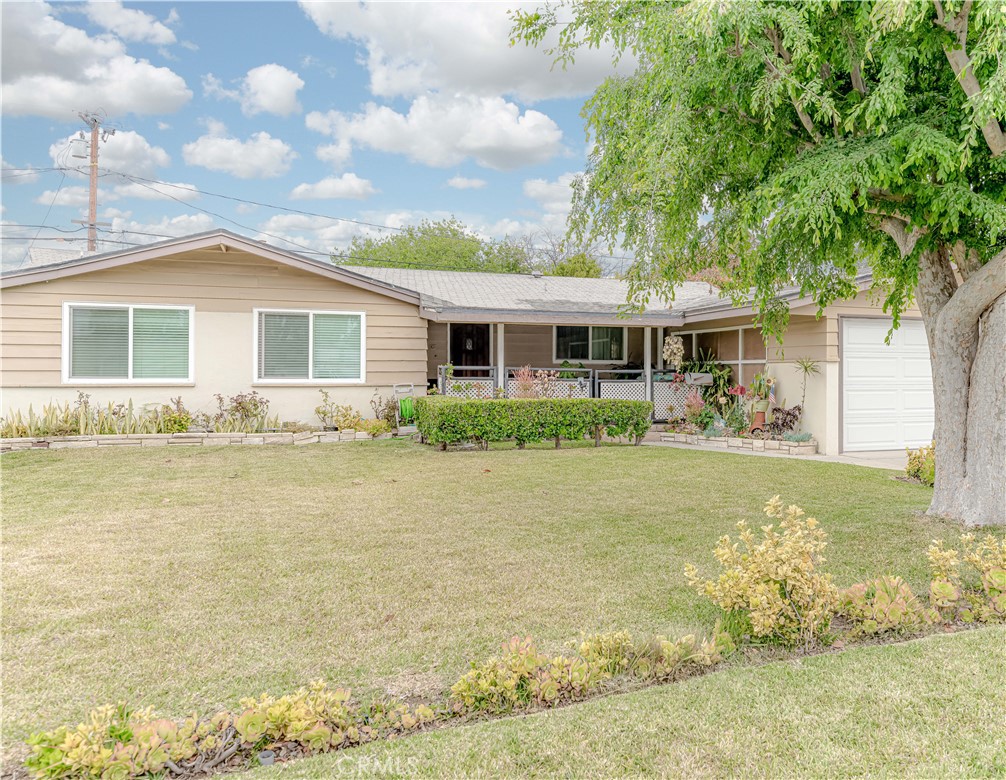Well-maintained 4 bedroom, 2 bathroom home located on a tranquil Garden Grove neighborhood. Approach the home and you will find a spacious front yard and cozy porch with ample space for patio furniture and lounging. Upon entering is the bright kitchen featuring a gas range/oven, and dishwasher. Adjoined is the eating area opening to a sun-soaked living room. Direct access to the 2 car garage is nestled between the kitchen and dining area. Washer and dryer hookups are also included in the garage. Roomy with a warm fireplace, the living room boasts a patio slider to access the nicely landscaped and paved backyard. A perfect space to entertain, the backyard features a sizable storage shed and lush trees and flowers. Down the hall are three ample-sized bedrooms, the master bedroom, and a full bathroom complete with dual vanity. The master showcases a private en suite. Great location means you are only minutes away from The Promenade’s shop/entertainment plaza, Steelcraft, Garden Grove Main Library, and Main Street’s eateries, bars, and shops! The ideal home for someone looking to add their personal stamp!
