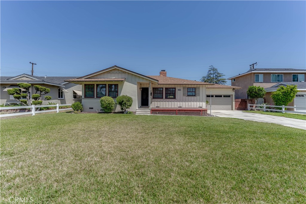 Immaculate 3 bedroom, 2 bathroom home nestled in a tranquil Garden Grove neighborhood. As you approach the home you will find a large front yard boasting a greenbelt, spacious driveway, and raised front porch. Step inside and be met by a roomy living room. Recessed/LED lighting, central HVAC, JELD-WEN Dual Pane Windows, and original hardwood flooring flow throughout the home. Warm up next to the cozy corner-end fireplace. Adjacent to the living room is the kitchen and dining area. Gorgeous glass tile backsplash, Silestone counters, and dark oak cabinets adorn the kitchen. Stainless steel appliances include a gas range/oven, dishwasher, and microwave. Beyond the dining area is the family room offering direct access to the 2 car garage and French door patio slider opening to the backyard. Tucked away in the hallway are the master bedroom, a full bath, and two guest bedrooms. The master includes a private en suite, perfect for privacy. Both the en suite and the hallway bath showcase similar upgrades such as Silestone vanities, light fixtures, decorative mirrors, and glass tile walls. All rooms, including the living/family room, are equipped with ceiling fans. Outside, the large backyard has an additional raised patio area leading to a covered and paved patio, great for summer fun! A well-manicured, lush greenbelt and bushes are featured in the backyard. Conveniently located near amazing entertainment, shopping, and restaurants such as SteelCraft, Garden Grove Main Library, Historic Main Street, Costco, and much more!