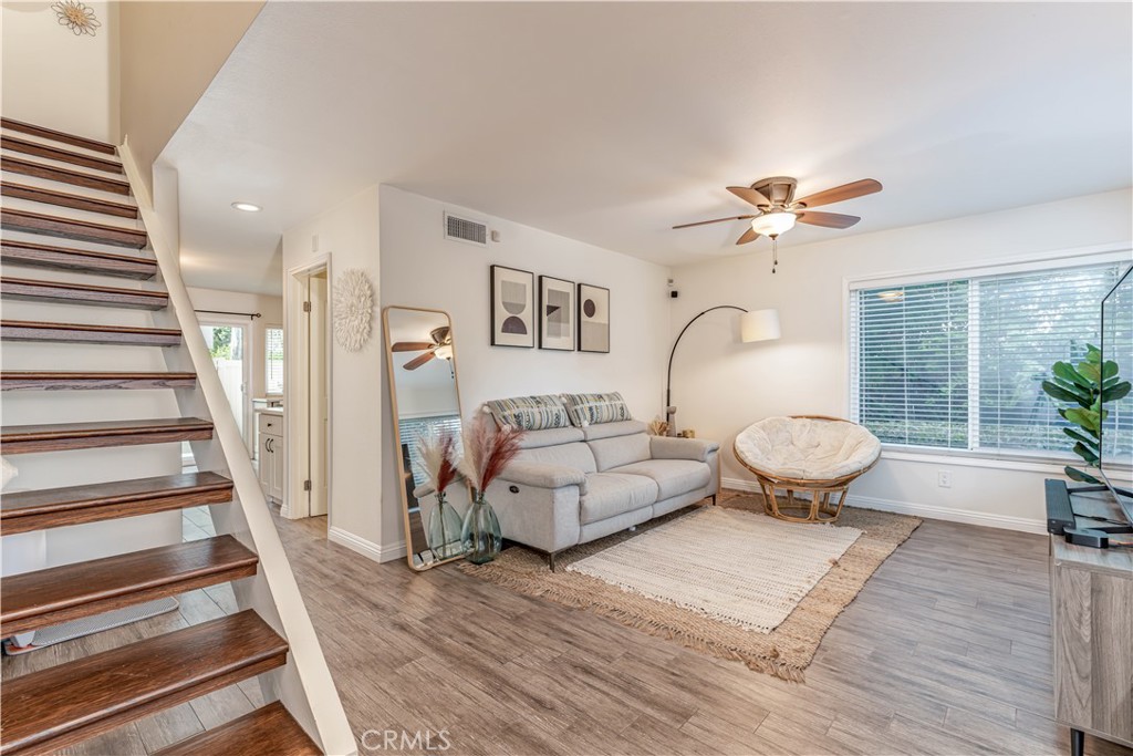Welcome home to Santa Ana! This clean, fully renovated 3 bedroom, 1.5 bathroom condo boasts central HVAC, vinyl flooring, and modern finishes throughout. Step inside and be met to a cozy living room offering great space and a storage space under the staircase. Nestled in the hall is a half bath, perfect for guests. Beyond it are the open kitchen and adjoined dining area offering natural light via a patio slider. White shaker style cabinets, designer lighting fixtures, glass tile backsplash, quartz counters, and a butcher block peninsula complete with a breakfast bar are some of the amazing features found in the kitchen. Tucked away in the kitchen is the shared pantry + laundry closet with storage shelves. Stainless steel appliances include gas range/oven, microwave, and dishwasher. Open the patio door to enjoy a quaint backyard area. Paved with a small artificial turf area, add some patio furniture and make it your outdoor oasis. Moving upstairs, the second level showcases the master bedroom, two guest bedrooms, and a shared full bathroom. The garage is fully equipped with a 220 volt for vehicle charging, storage cabinets, and epoxy flooring. Tranquil and well-maintained, the HOA community has great amenities such as a tot-lot, basketball courts, a large sparkling pool, and a relaxing jacuzzi. Prime Santa Ana location near South Coast Metro. Shopping, entertainment, and dining in the area include South Coast Plaza, Metro Pointe Plaza, Regal Edwards Theaters, Karl Strauss Brewery, Water Grille, Mile Square Park and much more!