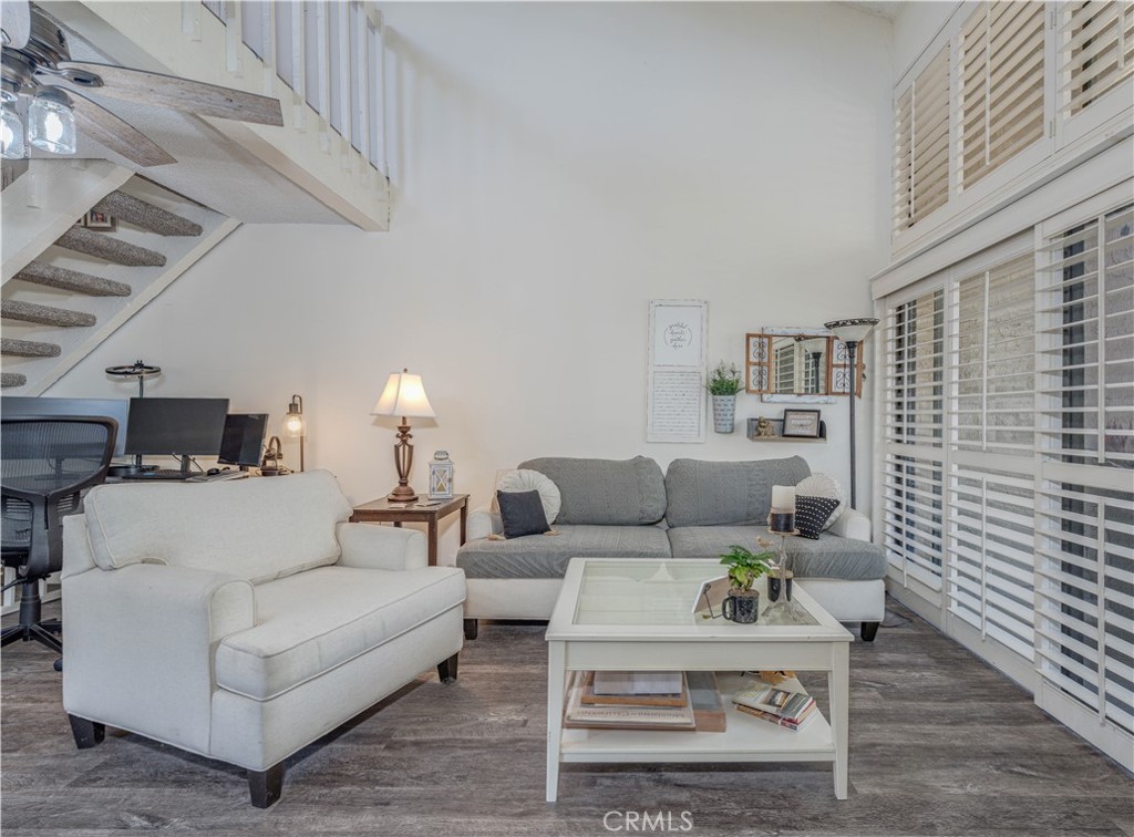 THE ONLY END UNIT CURRENTLY OFFERED FOR SALE IN THE COMMUNITY! Welcome to your exquisite new home nestled in the stunning foothills of Orange, located in the highly sought-after Orange Lakes Community. This picturesque neighborhood is a tapestry of serene streams, charming water features, elegant bridges, and lush, mature landscaping that creates a tranquil atmosphere. As you step inside, you are greeted by an abundance of natural light that bathes the open living spaces, enhancing the warm and inviting ambiance. The striking Mid-Century cone fireplace stands as a captivating focal point in the main living area, serving not only as a source of warmth but also as a stylish conversation piece. The rich, warm wood laminate flooring flows seamlessly throughout the home, while the soaring ceilings add an element of grandeur and sophistication. Just off the living room, a private patio awaits, providing a perfect oasis for relaxation after a long day or an ideal space for hosting friends and family during gatherings. The kitchen is a bright, cheerful space featuring ample cabinets that offer plenty of storage. A convenient serve-over bar invites casual dining experiences, making mealtime both enjoyable and seamless. Ascend the staircase to discover the primary bedroom sanctuary, complete with an en suite bathroom that offers a spa-like retreat, and a generously sized walk-in closet perfect for all your storage needs. For your convenience, a designated covered parking space is located just steps from your front door, ensuring easy access to your home. The Orange Lakes Community boasts fantastic amenities, including a refreshing pool, rejuvenating spa, and tennis courts for your enjoyment. Ideally situated, this community provides quick access to Chapman University, the scenic Peters Canyon, Irvine Park, major freeways, and toll roads, not to mention an array of shopping, dining, and the charming historic district of Old Town Orange.