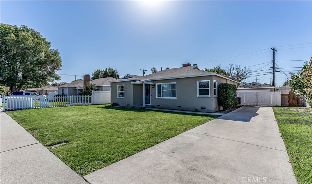 Welcome home to Anaheim! Approach the home to find a well-maintained front lawn, and spacious driveway and gated entry to access the detached 2-car garage. Gorgeously remodeled in 2018, this 4 bedroom, 2.5 bathroom home has modern features throughout. Enter the home and see a great open floorplan offering WPC vinyl flooring and a newer HVAC system throughout. The living room offers a cozy fireplace, perfect for the winter. Adjacent to it is the kitchen showcasing beautiful granite counters, dark brown shaker style cabinets, and stainless steel appliances. The bedrooms and bathrooms are nestled in the hall to the left of the living room. The formal dining area has been enclosed and serves as a 4th bedroom. Open the kitchen patio door and step into the professionally landscaped backyard. The backyard has amazing entertainment space, a paved patio section, mature trees providing shade, and access to the garage. Great location with nearby access to the 91 and 57 FWY’s. Only minutes away from a myriad of shopping centers, eateries, and much more!