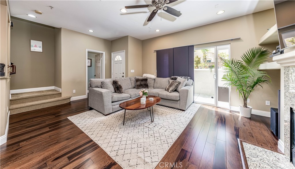 Upgraded 3 bedroom, 2.5 bathroom townhome boasting prime location near Huntington State Beach. Approach the home and see an enclosed front patio perfect for outdoor lounging. Upon entering you are greeted by a spacious living room featuring high ceilings and plenty of natural light via the patio slider. New hardwood flooring, baseboards, fresh paint, modern light fixtures, and ceiling fans flow throughout the home. The fully remodeled half bath is ideal for guests. Warm up next to the fireplace in the winter. Adjoined to the living room is the open kitchen and dining area. Showcased in the kitchen are resurfaced cabinets, granite counters, a reverse osmosis drinking water system, stainless steel appliances, and a breakfast bar. Moving upstairs, the second level consists of all three bedrooms, a hallway bath, and a linen station. As you walk up the stairs there are step lights equipped on each step. Both guest bedrooms offer ample space, ceiling fans, and standard mirrored closets. The hallway bath has a new vanity, toilet, and ceramic tile flooring/shower walls. One bedroom, serving as a study, includes a window seating nook. Roomy, the master suite is complete with a barn door opening to a private en suite and cozy patio. A new vanity with a custom poured concrete counter, walk-in shower, toilet, rainfall showerhead, and walk-in closet complete with custom Cabinets Plus Organizers are presented in the earth-toned en suite. Direct access to the attached 2 car garage is conveniently located between the dining area and kitchen. Overhead storage, a custom worktable and cabinets from Cabinets Plus Organizers are also included in the garage. Other amazing features of the home include a newly serviced central HVAC, a Nest thermostat, a water softener system, and recessed lighting. The Seacliff Palms HOA community is very well maintained with lush greenbelts, trees, guest parking, and paid utilities such as water/sewer, trash, exterior maintenance, termite, and gardening. Only minutes away from awesome entertainment and shopping such as Five Points Plaza, Pacific City, Bella Terra Mall. Enjoy a quick 7 minute bike ride to Downtown Huntington Beach, Huntington State Beach and Dog Beach!